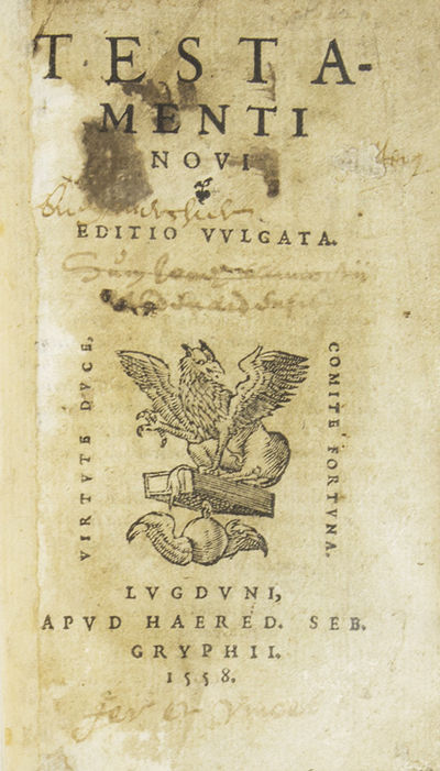 A famous illustrated New Testament, important “chiefly because of its influence on Bernard Salomon's New Testament cuts”. Baudrier VIII, 290; Mortimer, French 16th Century Books, 90 (edition of 1560); OCLC: 551931968 (locates one copy)