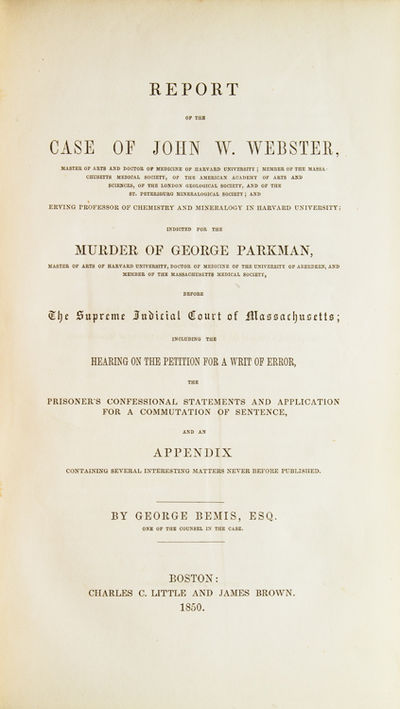 Trial of John W. Webster for the Murder of Dr. George Parkman Including the Hearing on the Petition for a Writ of Error, the Findings of the Coroner's Jury, the Prisoner's Confessional Statements, Appication for a Commutation of Sentence, Etc.