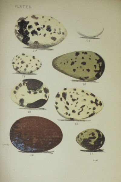 Boston: De Wolf, Fisk & Co, 1890. First Edition. Hard Cover. Very Good. Octavo. Illustrated with 10 beautiful hand colored plates showing various North American bird eggs. Bound in green cloth lettered in gilt; a very good copy, internally clean and bright. Ghost of number on spine, no other markings of any kind. Frontispiece tissue guard missing.