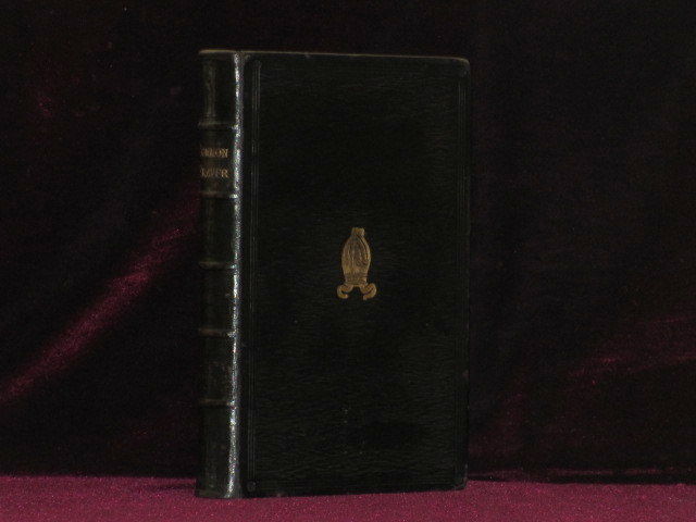 Cambridge; nd (ca.1875): C.J. Clay & Sons. Hard Cover. Near Fine. Octavo. And Other Rites and Ceremonies of the Church According to the Use of the Church of England, together with The Psalter, Or Psalms of David, pointed as they are to be sung or said in churches; and the form and manner of making, ordaining and consecrating of Bishops, Priests and Deacons. xlviii, 628pp. Printed in large print, handsomely bound in full black straight grained morocco centrally stamped in gilt depicting a mitre; raised bands, title gilt within one compartment, inner gilt dentelles, all edges gilt; prize bookplate from the Worcester Diocesan board of education dated 1891; light scattered foxing to first and last few leaves; internally clean and bright, a handsome copy with nice large type to be read with ease.