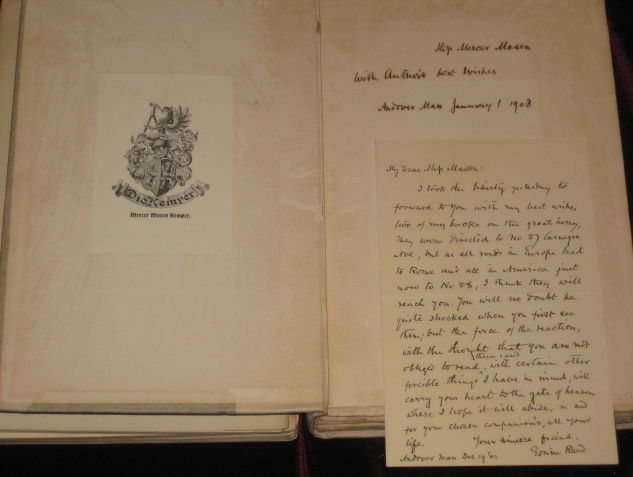 Boston: Charles E. Goodspeed, 1902. First Edition. Hard Cover. Very Good. Octavo. SIGNED AND INSCRIBED BY EDWIN REED and with a letter from the author to a close friend laid in telling the friend two of the author's books have been shipped. Recipients bookplate mounted to front pastedown, 441pp., unopened. Bound in 3/4 white buckram over gray paper covered boards, paper spine label, light soiling to covers, internally clean. A very good copy.
