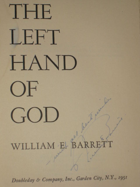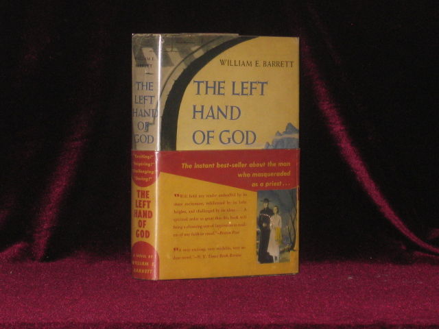 New York: Doubleday & Co, 1951. First Edition. Hard Cover with Dust Jacket. Very Good/Very Good. Octavo. SIGNED AND INSCRIBED "WITH ALL BEST WISHES" BY WILLIAM E. BARRETT ON TITLE PAGE without personalization. 8vo. 275pp. Bound in black cloth, spine lettered in gilt rubbed. previous owners name to front pastedown, erasure mark to front free endpaper, A very good copy in unclipped pictorial dust jacket rubbed along the edges, jacket split along rear panel at joint, with original orange and red wrap around blurb with cut-out to show the woman and priest.