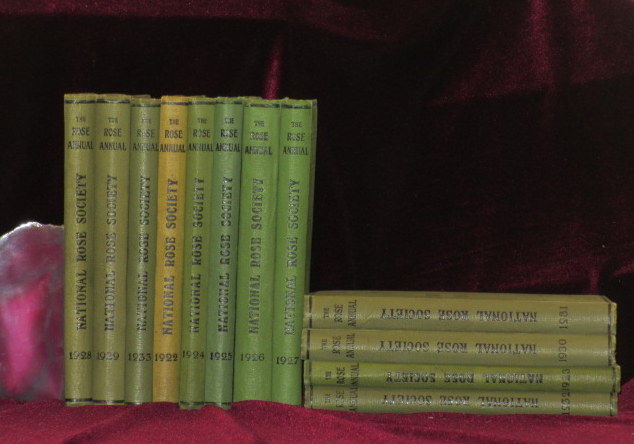 Croydon; 1922-1933: The Croydon Advertiser/The National Rose Society. Hard Cover. Very Good+. Octavo. 12 volumes, each volume approx. 250-300 pages including several advertisements at the rear, illustrated throughout with color and black and white photo illustrations; bound in green cloth decorated in blind, lettering black. The National Rose Society was founded in December of 1876. The membership is by subscription and the society holds various seasonal exhibitions. A very nice collection with hardly a trace of wear; a couple of spines with light fading; internally clean, with no markings of any kind. Several flyers are laid into the 1922 volume, relating to National Rose Society events. Very good to near fine.