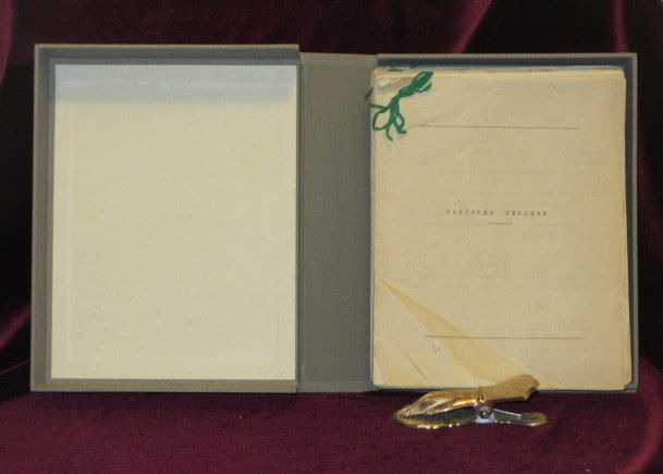 [CAMBRIDGE, nd. Ca.1917). First Edition. Very Good. Quarto. WINIFRED HERSELF is actually the working title for "Catherine Herself". Original carbon typescript, ribbon bound into three gatherings: 1-153, 158-337 and 340-527 pp. several endleaves to the second gathering detached, torn and frayed; gaps in collation noted above a consequence of detached leaves now absent; wanting at least one leaf at end; some other creasing and fraying but in all a very good and clean draft of James Hilton's precocious first novel, here still bearing its preliminary working title. At least two lines of carbon type are erased and a new line typed directly onto the carbon typescript (an example of this is on page 522). About 3 dozen words or phrases were typed directly between the lines of carbon print, doubtless by the author. According to Kunitz & Haycraft, Hilton wrote this novel when he was a 17 year old undergraduate at Christ's College, Cambridge and it was published in 1920 by T. Fisher Unwin, a year before he graduated. In all probability, apart form the character name change, this typescript represents a text which is at variance from the published form. In spite of the interruptions in collation, this is an important manuscript from the very earliest days of a career that included the later substantial successes, notably "Lost Horizon." Housed in a gray cloth clamshell with blue morocco spine label gilt.