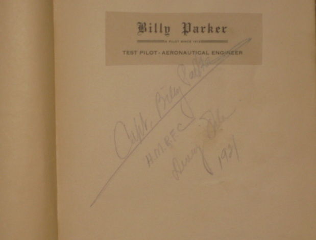 Boston: Small, Maynard & Co, 1921. First Edition. Hard Cover. Very Good. SIGNED AND INSCRIBED BY WILL D. (BILLY) PARKER. Legendary pioneer aviator Will D. (Billy) Parker's copy, with his bookplate and ownership inscription of front blank: "Capt. Billy Parker/H.M.R.F.C./Dewey Okla/1921" in pencil. Parker had just served Her Majesties Royal Flying Corps - the inscription shows his pride. His bookplate reads, "Billy Parker/A Pilot Since 1912/ Test Pilot/Aeronautical Engineer." Billy Parker (1899-1981), became known as "the Boy Aviator" and carried private pilot's license number 44. As a high school student in Ft. Collins, CO, he built a glider, which flew to an altitude of 300 feet. Then he built a pusher (similar to the Wright Brothers plane), with a motorcycle engine, but it couldn't fly well above several thousand feet, because of thinner air (and insufficient horsepower). His mother helped him to purchase a 50 horsepower French Gnome engine - thus Billy Parker became a professional pilot. As a college student in Ft. Collins, he performed at state and county fairs, as a stunt pilot. He barnstormed in the 1920's, worked as a test pilot, and from 1926 to 1966, he managed the aviation division of Phillips Petroleum. He was President of the Early Birds, an exclusive group who flew before December 17, 1916 and included such members as Wiley Post, Willard, Fokker and Morriss. Parker and Joe Bartles set up an aircraft factory at Dewey, Oklahoma and built airplanes under the name "Dewey Aircraft Company." Parker held the 44th pilot's license issued in America. He invented the variable-pitch propeller and he built a half-dozen planes himself. In World War I, Parker ran an aviation school to train pilots for the military. He continued to fly the two pushers he built in 1912 and 1914 at events, well into the 1960's. Octavo, 285 pp. Bound in original green cloth, with title and a pair of wings in orange, on front panel. Illustrated with photographs and some scale drawings. Cover edge wear; hinges are tight; internally clean.
