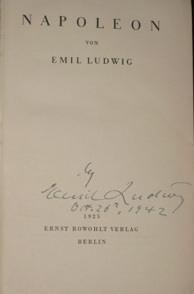Berlin: Ernst Rowohlt Verlag, 1925. First Edition (in German). Hard Cover. Fine. Octavo. True first edition. 695 pages; original navy blue cloth, printed in gilt. SIGNED AND DATED BY EMIL LUDWIG ON TITLE PAGE AND A 1942 NEWSPAPER ARTICLE ABOUT LUDWIG ALSO INSCRIBED AND LAID-IN. Bookplate of Frost collector Earle Bernheimer and 4 stamps with images of Napoleon and Josephine on the front pastedown and ffep. A fine copy in a contemporary quarter leather slipcase, with chemise.
