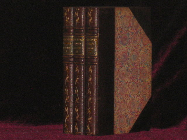 London: Chapman & Hall, 1866. First Edition. Three Quarter Leather. Fine. Octavo. THREE VOLUMES. 302, 318 328pp. half-titles present in volumes one and two, bound in 3/4 brown morocco over marbled paper covered boards, raised bands, green morocco spine label within one compartment, spine decorated with a gilt vine motif, marbled endpapers top edges gilt. Quite a handsome triple decker and quite scarce; only two copies appear in the auction record since 1982.