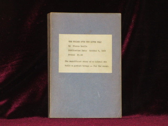 New York: The Vanguard Press, Inc, 1954. Original Wraps. Very Good/No Dust Jacket. Octavo. Advance Review Copy. The magnificent story of a Colonel who built a perfect bridge--for the enemy. 224pp. Bound in original pale blue wrappers with typed paper label to upper wrap. Owner's name on verso of front cover, spine darkened. A very good copy of this scarce review copy.