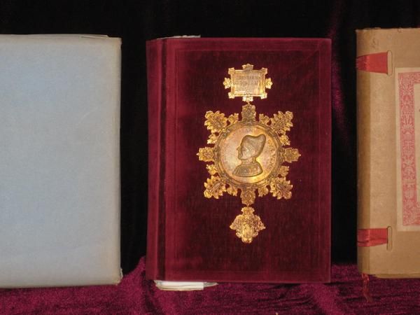 Venice: Ferd. Ogania, 1906. LIMITED EDITION. Hard Cover. Fine. English edition limited to 500 copies, 110 full page plates including four chromolithographic plates all with tissue guards, several various colored silk ribbons tissue wrapped for protection, bound in deep red velvet, central gilt portrait medallion with florets, pictorial orange endpapers, top edge gauffered, all others uncut. Previous owner's inscription; a fine copy housed within original cardboard case with decorative red paper label mounted. Very nice.