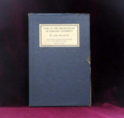 New York: The Macmillan Company, 1937. LIMITED EDITION. Hard Cover with Dust Jacket. Fine/Good. Quarto. SIGNED BY JOHN MASEFIELD ON COLOPHON without personalization. LIMITED EDITION OF 250 SIGNED COPIES. THIS IS No. 25. With a 2 page letter written by a young boy of 16 in 1918 asking Mr. Masefield for his autograph as he collects autographs of "distinguished men and women" and has autographs of Kipling, Galsworthy, and others. He also makes note that he will enclose one dollar for his relief fund. This letter is tipped in to the last page after the signed limitation page. Is it possible that Masefield forgot to return his request and finally remembered in 1937 or, since this was one of the first 25 copies, did Masefield send this as a special gift after a possible long friendship? 12pp., bound in 1/4 blue cloth over gray boards lettered in gilt, in chipped glassine wrapper. Light wear to dark blue paper covered slipcase with paper label.