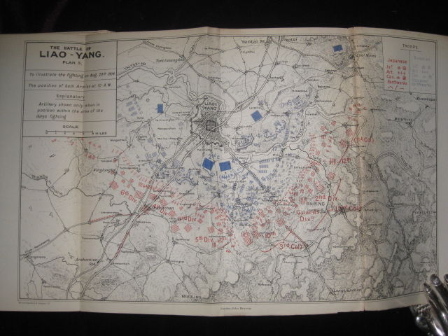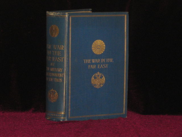 London: John Murray, 1905. First Edition in Book Form. Hard Cover. Very Good+. Thick Octavo. 656pp., bound in blue cloth decoratively stamped in gilt, spine and top edge gilt, lightly rubbed at spine ends and joints, Illustrated by Percy Fisher with 9 pictorial engravings of various important officers, 35 folding maps including one large folding map at rear, 1 chart and 2 folding plans, neat owner's name dated 1906 and a note pertaining to who may have sent this book to him.Lady Feversham(?). A very nice copy. News articles written by the author who was a military news correspondent during the war between the Russia and Japan for The Times, gathered together to now form this book. The author later ranked Colonel before his death.