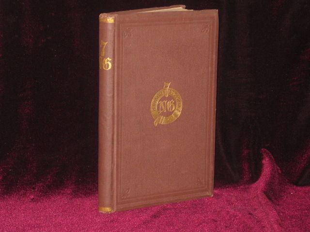 Np: The Board of Officers, 1868. Hard Cover. Near Fine. Octavo. Frontispiece of the Seventh Regiment Armory, 166pp. plus a listing of the Roll of Honor of members of the Seventh Regiment who served as volunteer officers in the Army and Navy of the United States during the Great Rebellion. Previous owner's name and dated 1871, a near fine copy bound in brown cloth over beveled boards centrally stamped in gilt, spine gilt, pale yellow endpapers.