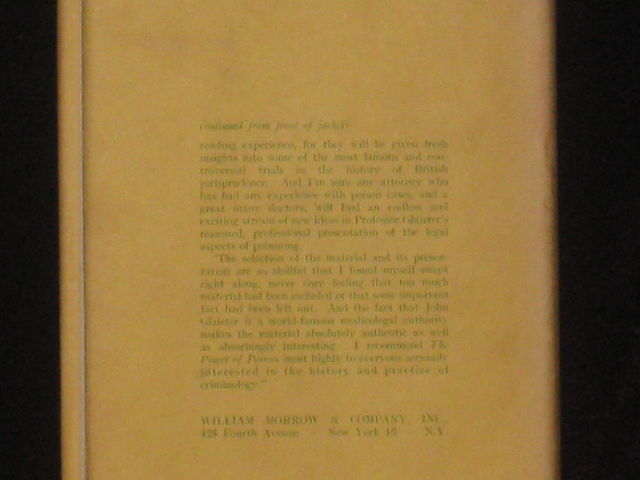 New York: William Morrow & Co, 1954. First Edition. Hard Cover with Dust Jacket. Fine/Very Good. Octavo. A fine copy, in a very good or better dust jacket, with slight stain to spine, no chips. Book review by famed mystery writer, Erle Stanley Gardner, on dust jacket.