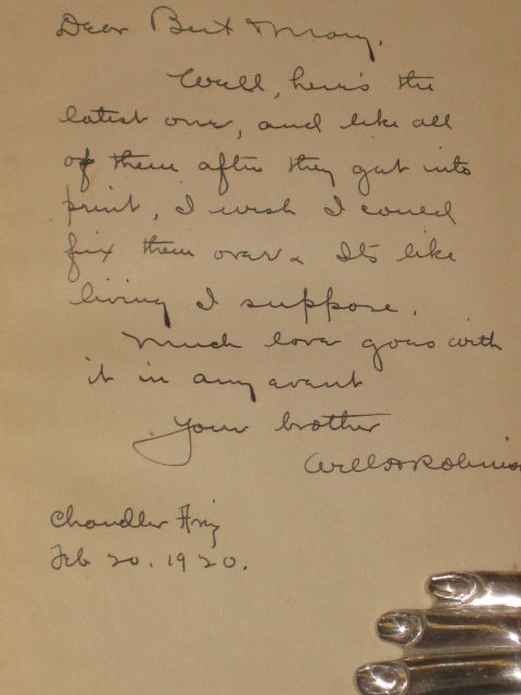 Phoenix AZ: The Berryhill Co, 1919. First Edition. Hard Cover. Very Good. SIGNED, INSCRIBED AND DATED BY WILL H. ROBINSON TO HIS BROTHER ON FFEP. 12mo, 71 pp. Bound green cloth spine over green printed boards. Minor edge wear; faint pencil marks rear endpapers; a very good copy.