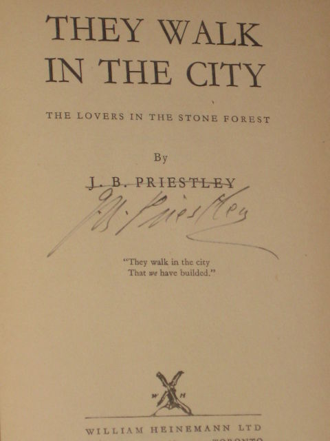 London: William Heinemann, 1936. First Edition. Hard Cover with Dust Jacket. Near Fine/Very Good. Octavo. SIGNED BY JOHN BOYNTON PRIESTLEY ON TITLE PAGE without personalization. 515 pp. Bound in original blue cloth, spine lettering gilt; small dimple in spine, dust jacket with light wear at spine ends, spine lightly darkened.