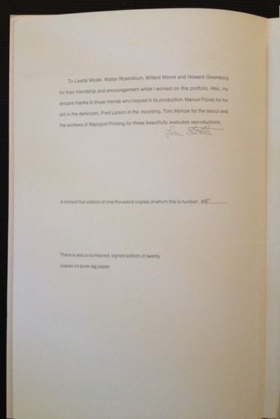 New York: Stettner Studio, 1975. Original wraps. Near Fine. Impressive 1975 portfolio of black-and-white portraits by Lou Stettner, "in celebration of international women's year". #48 OF 1,000 COPIES ISSUED SIGNED BY LOU STETTNER. Mising 1 of the 22 photographs but the remaining 21 are in pristine condition. The attractive pictorial chemise has held up nicely too and is Near Fine in its thick card wrappers.