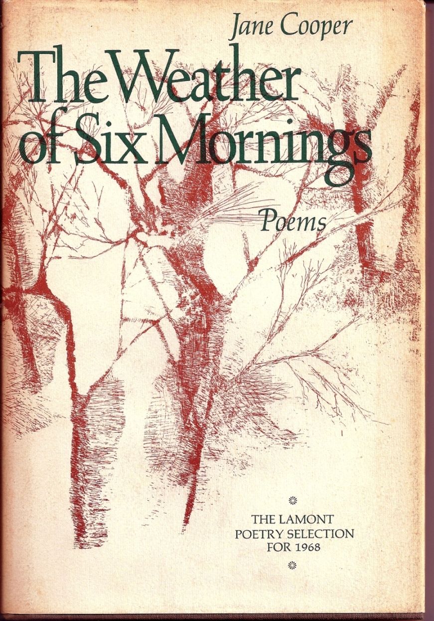 (New York) London: The Macmillan Company, (1969). First Edition. Hardcover. Fine in a Near Fine dustwrapper with a tanned spine. Poet's first book. INSCRIBED and SIGNED on the half-title page: "for William Meredith/with affection + admiration,/for a long time/Jane Cooper." A Lamont Poetry Selection.