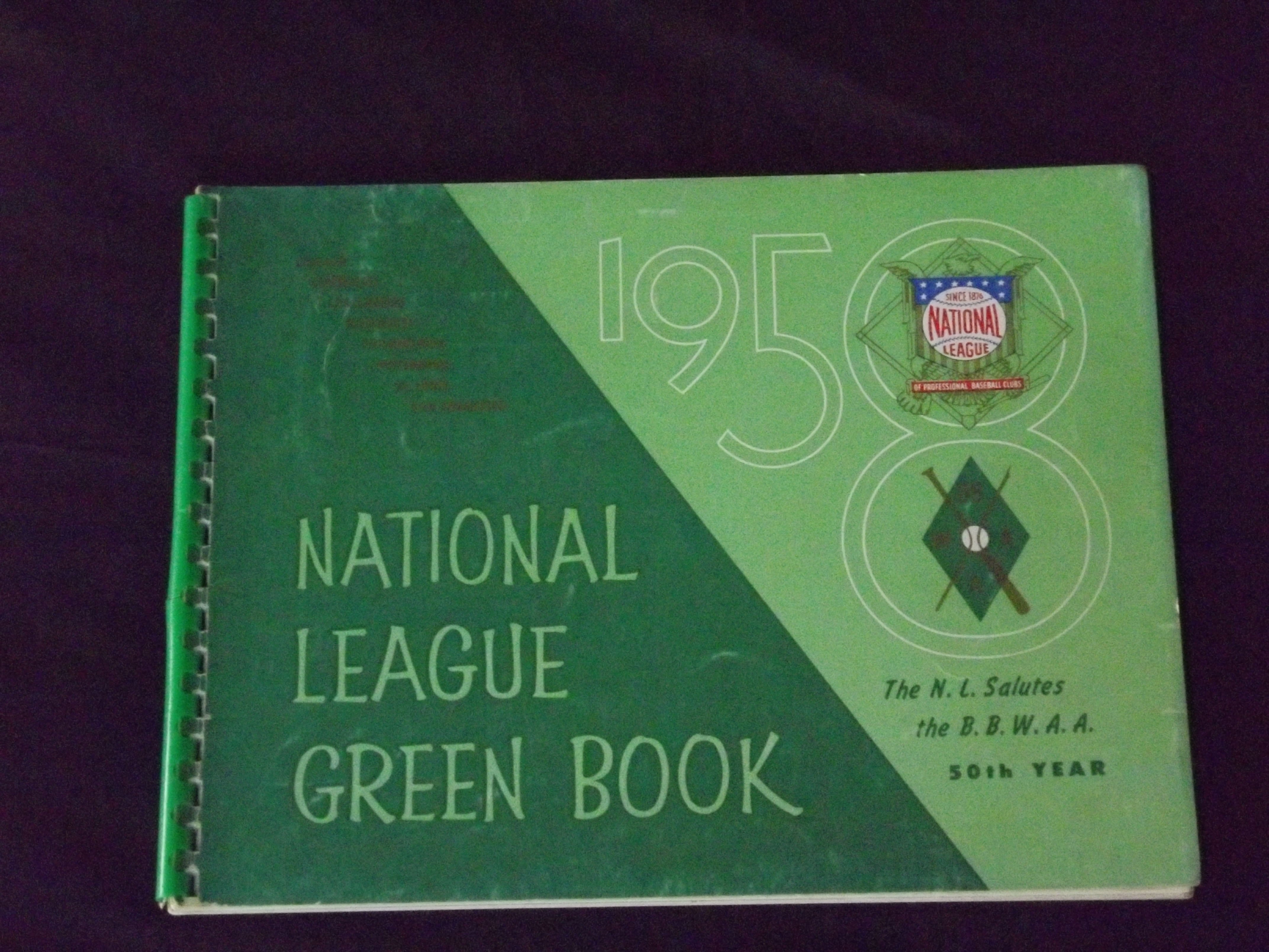 4to, (11 1/4" x 8 1/2"), spiral bound, green covers with illustration, 60 pp. Some light wear to covers, a chop in the margin of the first few pages, some slight aging; overall very good. Beginning in the 1930s major league baseball (MLB) printed its red and green books to serve as a research tool for the media, The Green Book was edited by Dave Grote, and its full of information about the National League teams, including game rules, official game schedules, spring training information and club standings. There is also substantial information on the players, such as, batting averages, lifetime pitching records, grand slam home runs, and MVP awards. While the Red and Green books were eventually sold to fans for a time, in 2009 they stopped printing them and sent digital versions to the press. AP February 26, 2009.