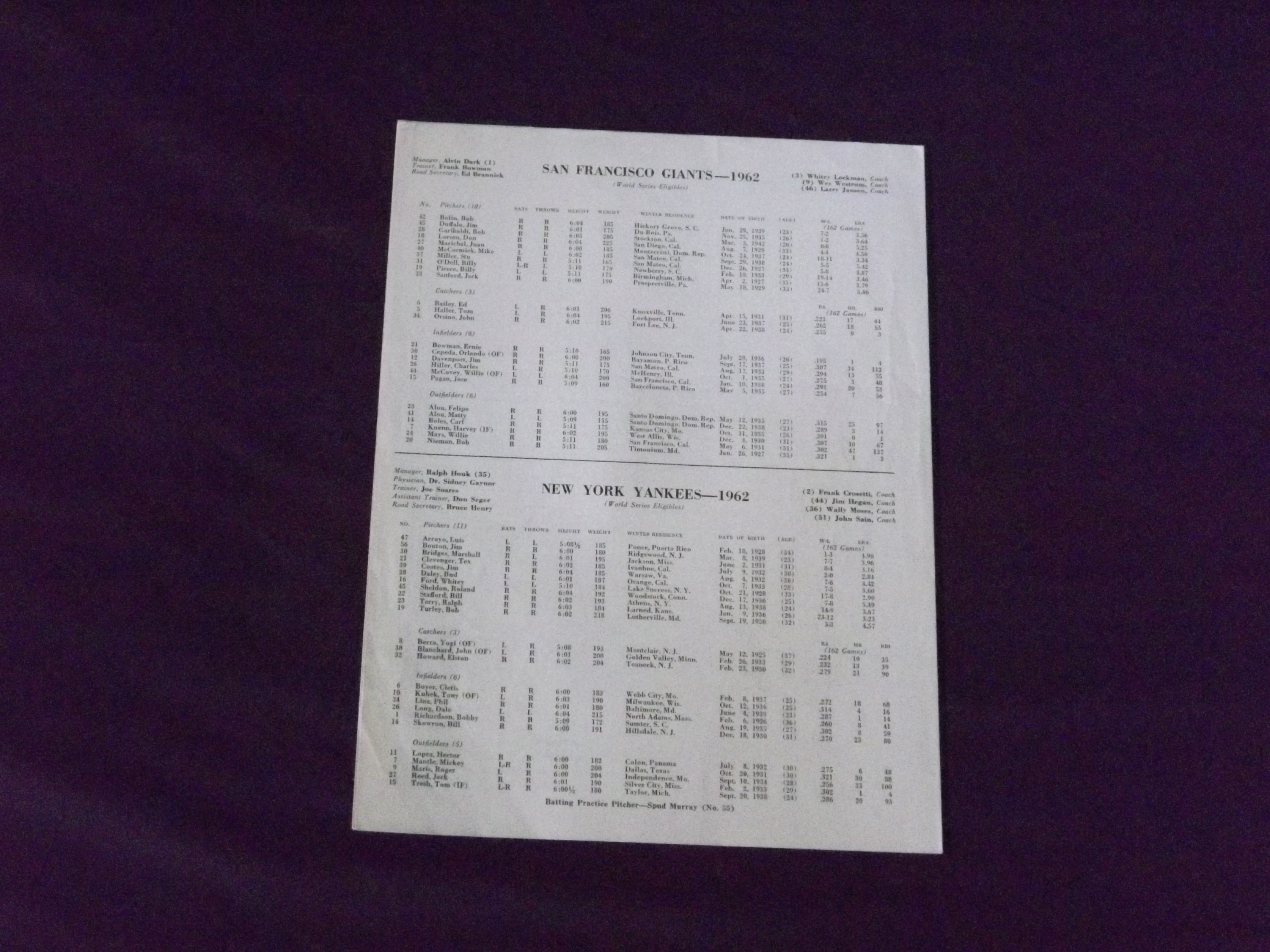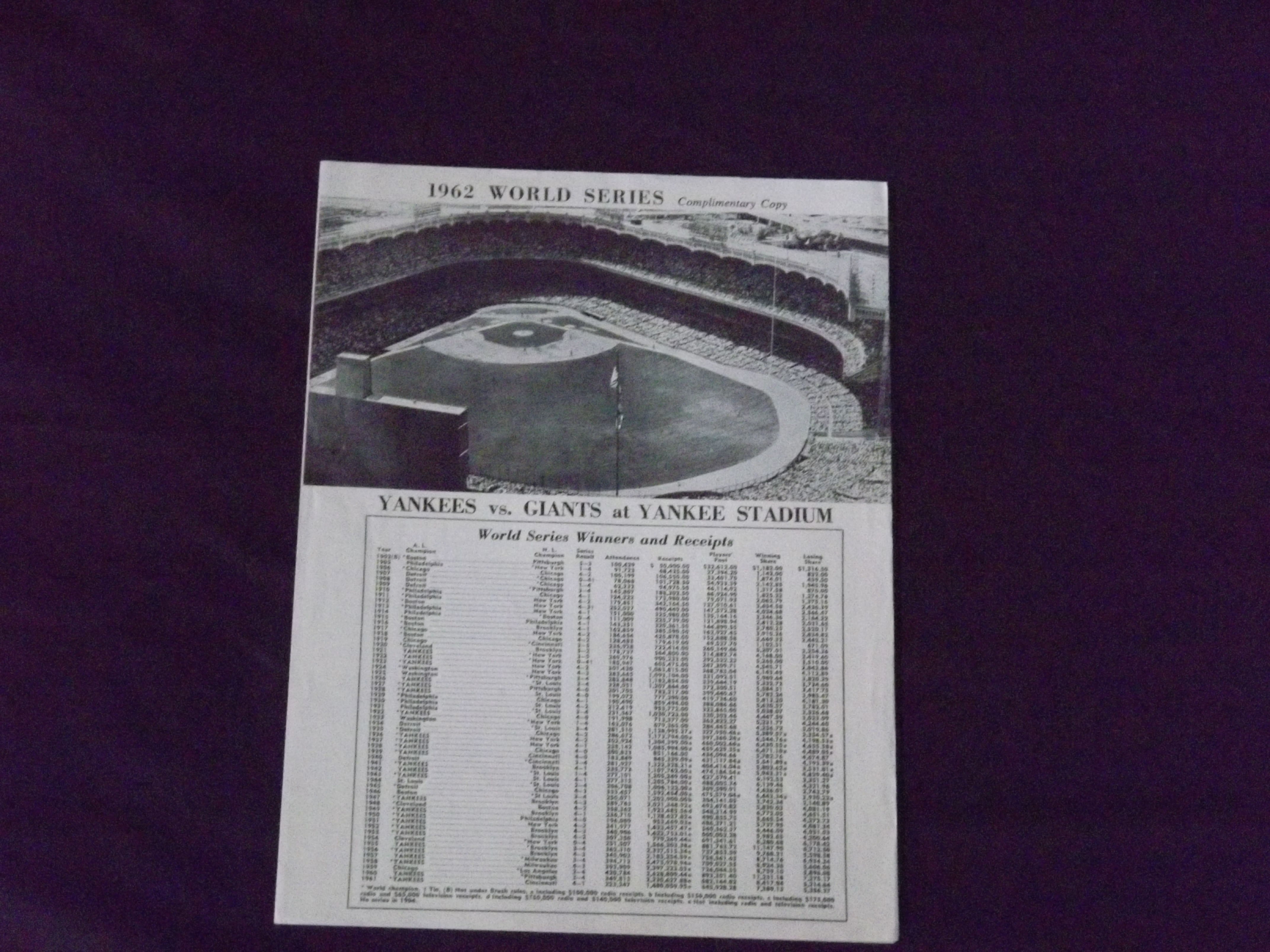 1962 World Series Complimentary Copy: Yankees vs. Giants at Yankee Stadium.