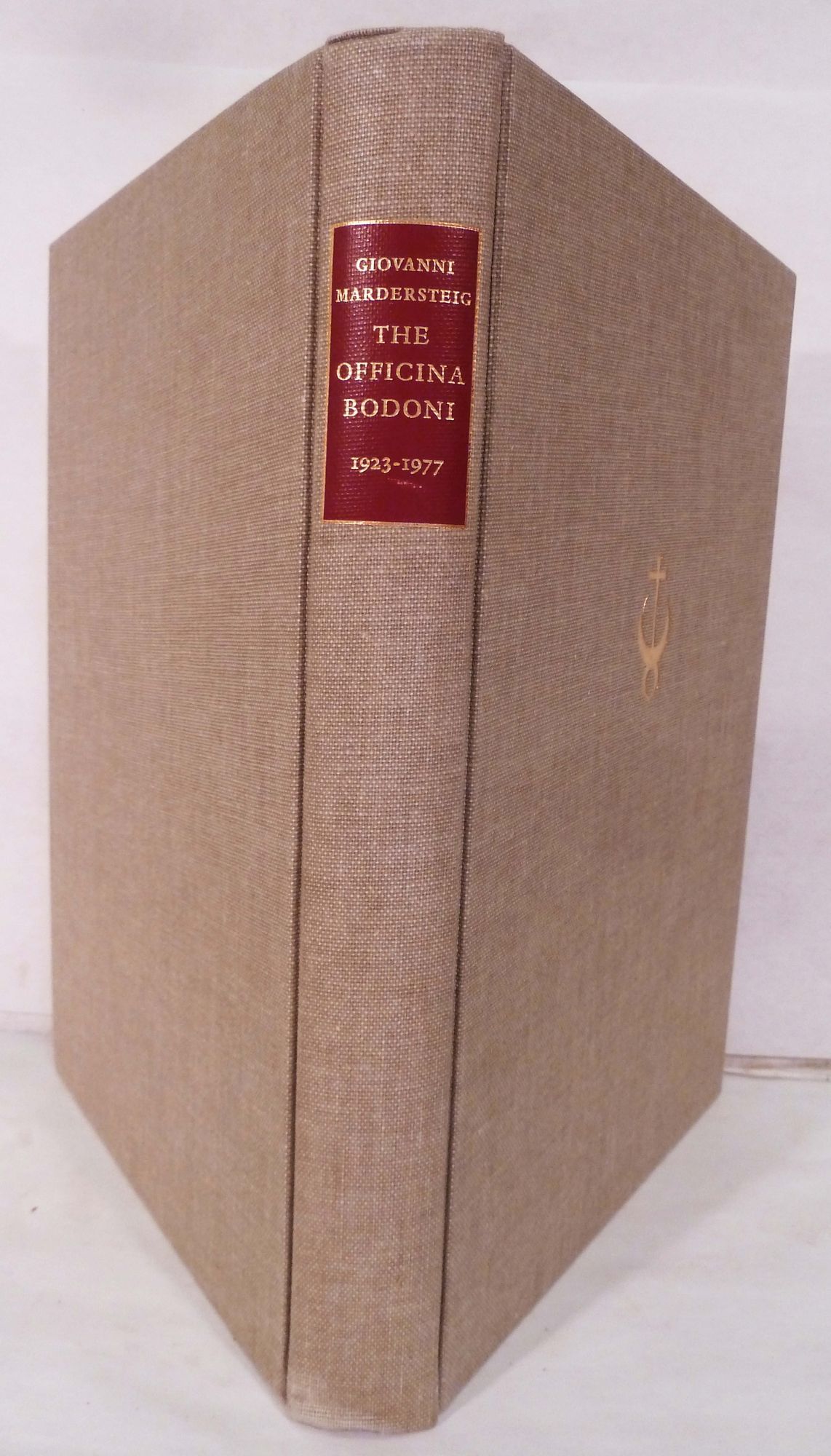 Verona: Edizioni Valdonega, 1980. Hardcover. Orig. tan basket weave cloth, gilt Bodoni device front cover, spine lettered in gilt. Fine in publisher's shipping case. 286 pages, 20.5 x 21.5. Edited by Hans Schmoller. Limited edition, one of 1500. Illustrated, some in color. A history of the books, type faces, devices and the titles handsomely printed by the Stamperia Valdonega.