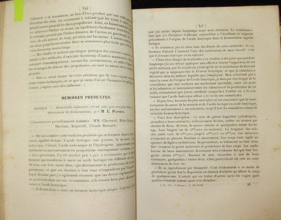 ANIMALCULES INFUSOIRES VIVANT SANS GAZ OXYGENE LIBRE ET DETERMINANT DE FERMENTATIONS and MEMOIRE SUR LES CORPUSCULES ORGANISES QUI EXISTENT EN SUSPENSION DANS L'ATMOSPHERE and EXPERIENCES ET VUES NOUVELLES SUR LA NATURE DES FERMENTATIONS In Comptes Rendus