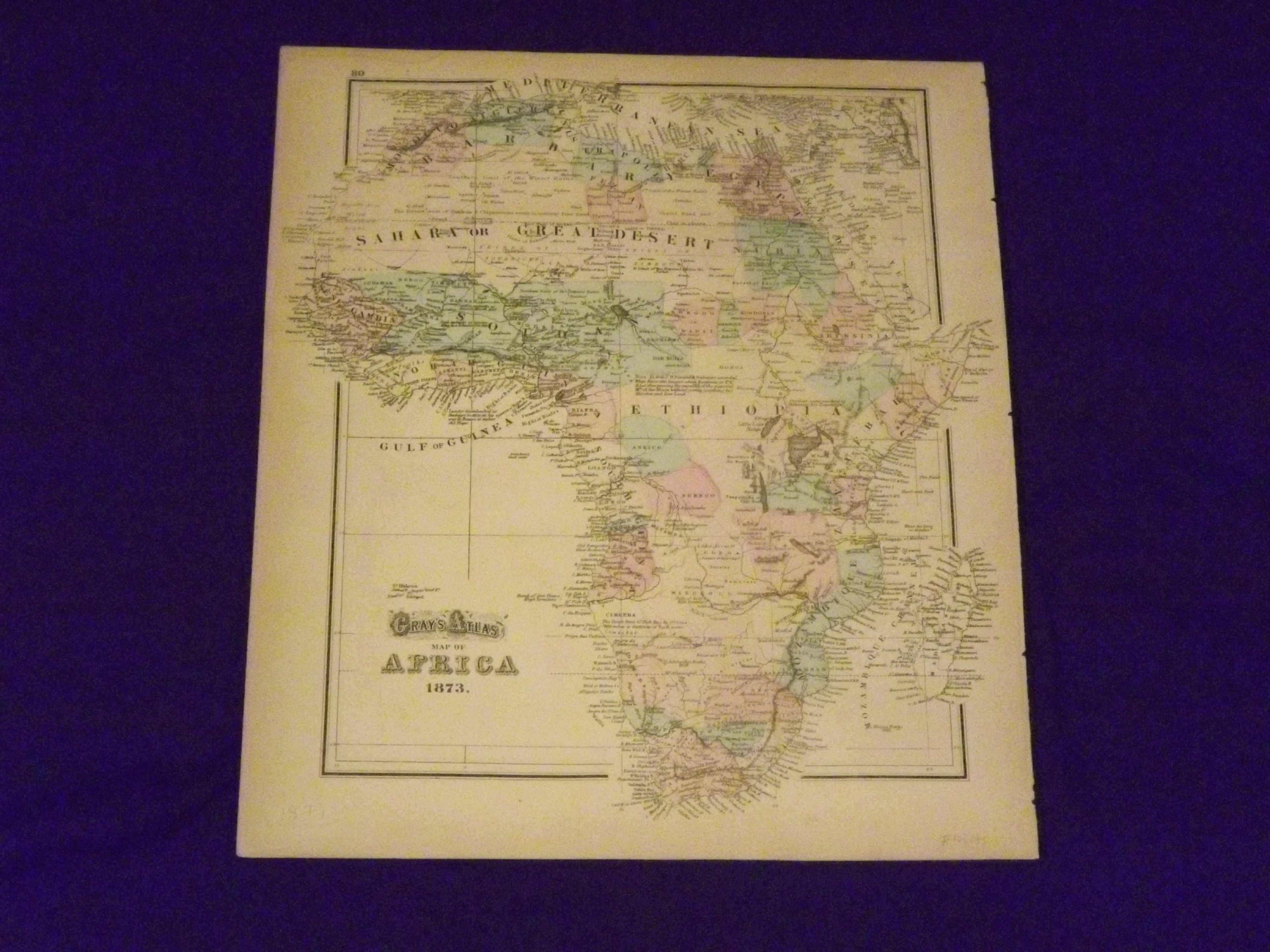 Published in the 1873 installment of Gray's Atlas of the United States, this is a very attractive and colorful map of Africa from the Stanley and Livinston period.. There is plenty of detail, the map shows the "Great Desert' (Sahara), Ethopia and Mozambique the map of Asia is on the reverse side.