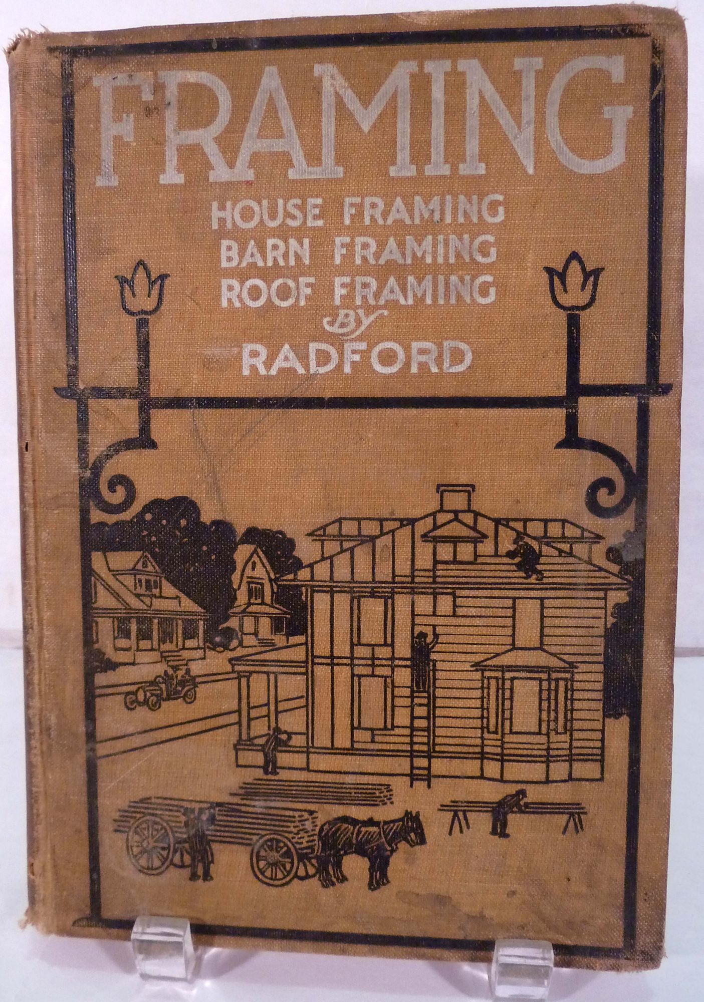 Chicago: Radford Architectural Co, 1909. Hardcover. Orig. illustrated yellow cloth lettered in white. Very good. 338 pages. 22 x 15 cm. 182 text illustrations. Includes House, Barn, Framing of industrial buildings and Strength of Timbers; Truss Framing. Index. Adverts at rear. Wear to extremities, and some cover soiling.