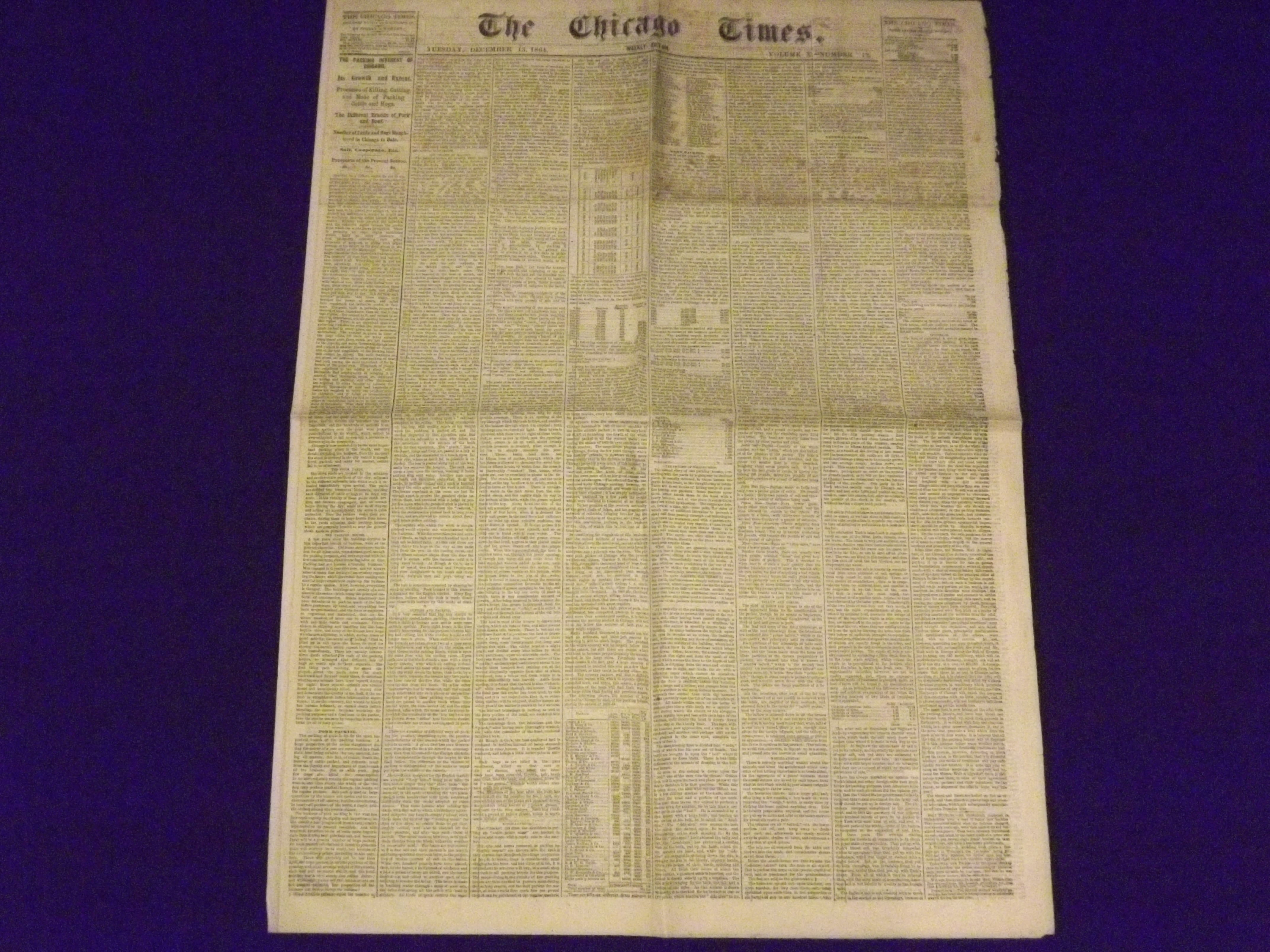 Newspaper, folio, folded, 4 pp. Some minor chips and folds at edges, creasing at folds, slight foxing, less than normal aging; otherwise in very good condition. Much better than average paper from this period. This issue of The Chicago Times includes a short article on the activities of General Sherman on the second page. A back page article presents the President's annual message to the country. While Civil War discussion is absent or limited, he comments on everything else from the Indian system to the public debt. # 106237