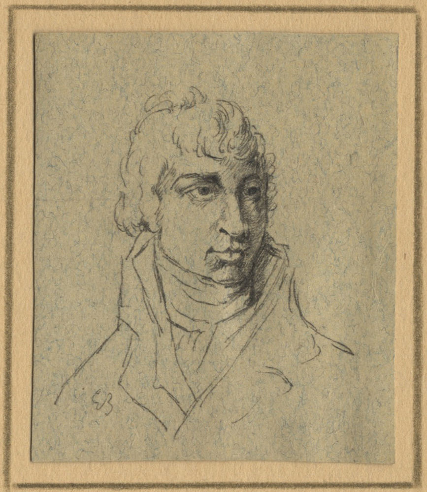 Ca. 71 x 60 mm. Signed with monogram "E.B." at lower left and identified on the verso as being of Carl Maria von Weber.