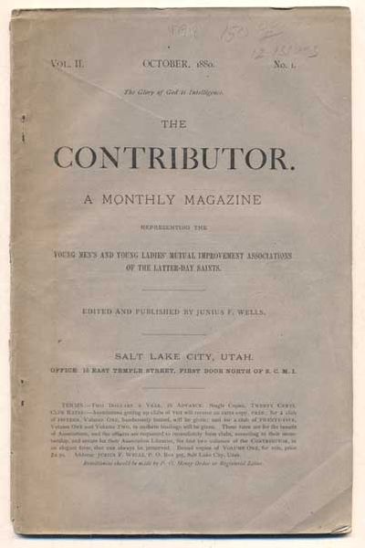 Salt Lake City, Utah: The Deseret News Printing and Publishing Establishment, 1880. First edition. Paperback. 12 issues in paper wraps. Octavo [24.5 cm]. Nos. 1 through 12. Light pencil names to covers of four issues, light darkening and some very light shelfwear. Unusual to see these unbound. Wells was the founding editor and publisher of The Contributor, an independent publication that sought to represent the YMMIA and the church's equivalent organization for young women. Wells continued in these roles until 1892, when the magazine was purchased by the Cannon family and Abraham H. Cannon took the leading role as the editor and publisher. The Contributor stopped being published in 1896.