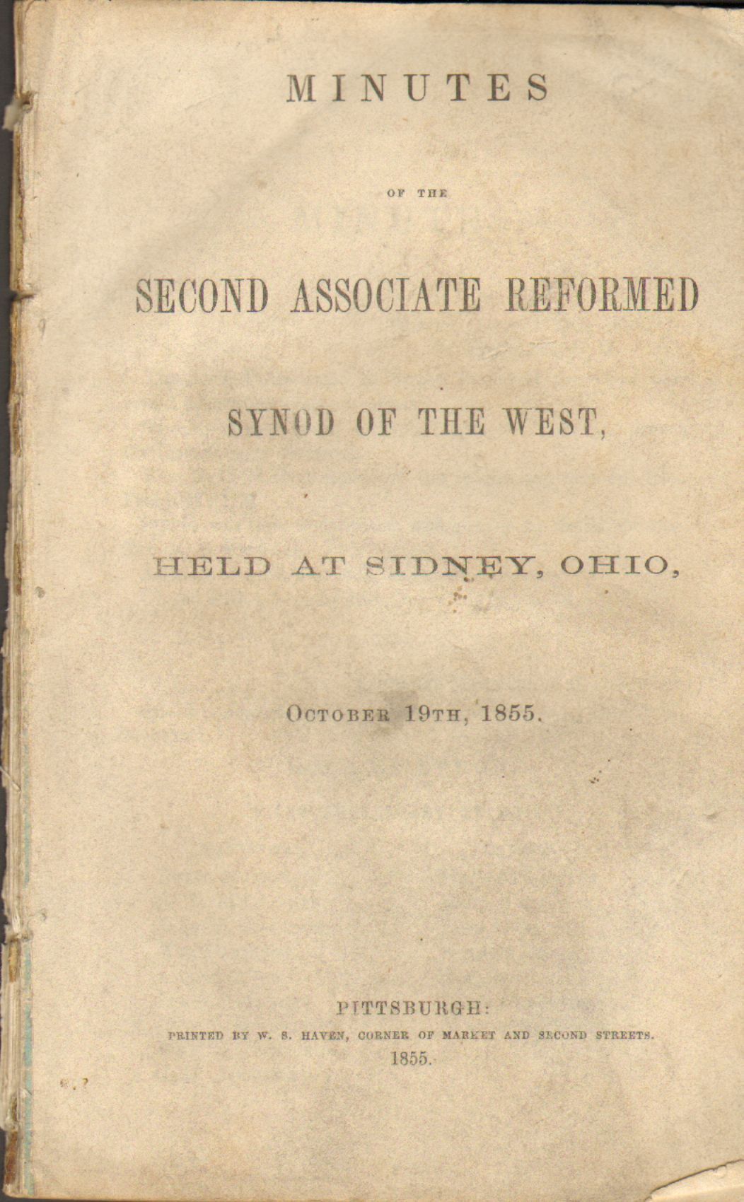 MINUTES OF THE SECOND ASSOCIATE REFORMED SYNOD OF THE WEST, HELD AT SIDNEY, OHIO, OCTOBER 19th, 1855