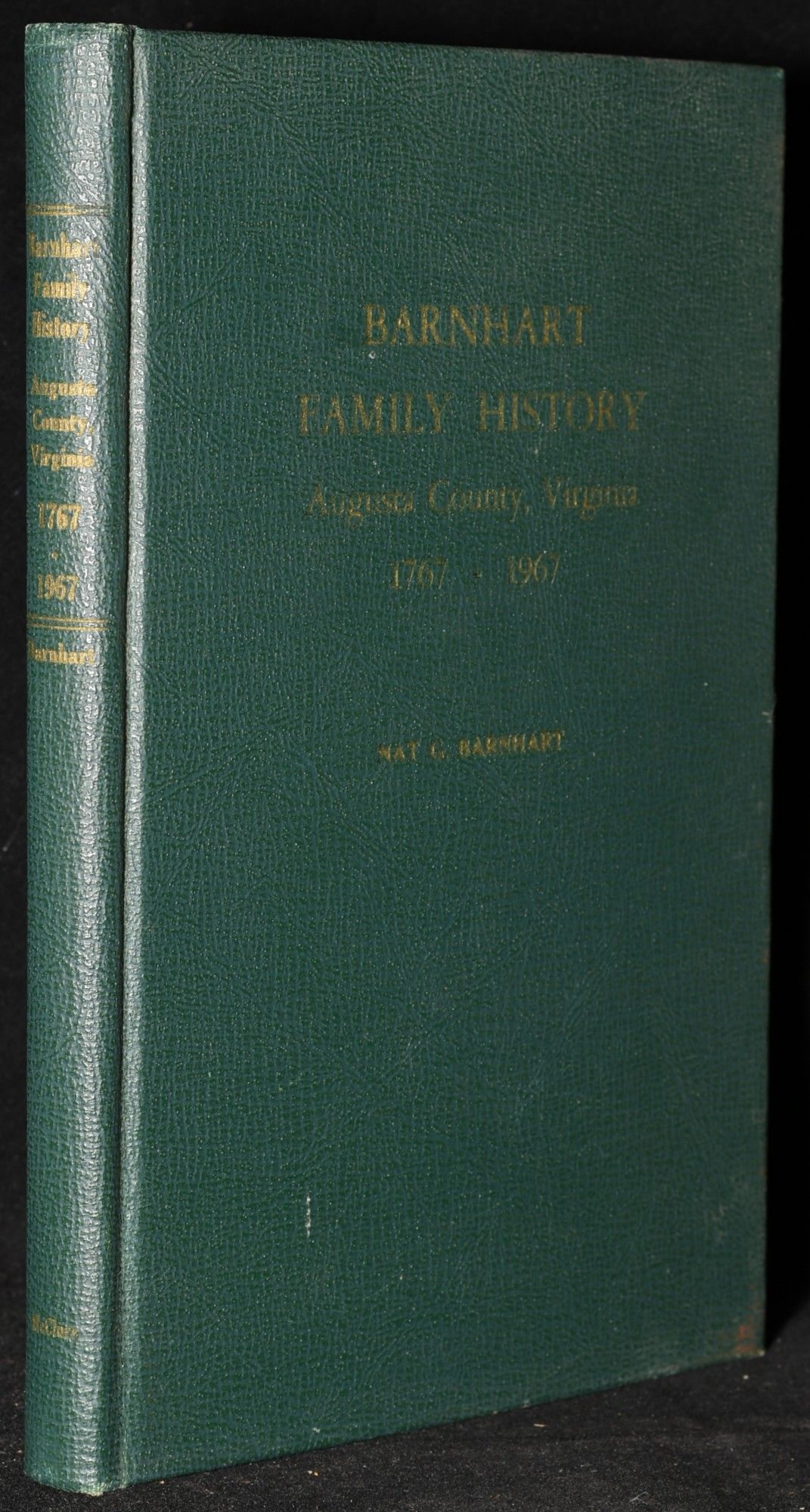 Staunton, Va: McClure Printing Co, 1967. First Edition. Hard Cover. Very Good binding. Signed. With illustrations, facsimiles, maps and portraits; 231 pages. With other families, including Coiner, Cullen, Patterson and Wampler. Signed by Nat Barnhart and Katie Rea Barnhart. Very Good binding.