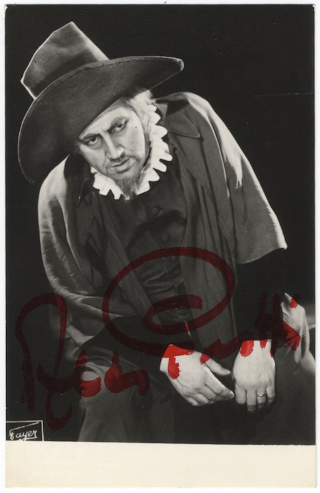 Ca. 138 x 89 mm. From the Fayer studio in Vienna. Ca. 138 x 89 mm. Aldo Protti "studied in Parma and made his début as Figaro in Il barbiere di Siviglia in 1948. At La Scala he first appeared in Aida in 1950, then in Rigoletto in 1954; he continued to sing at the house for many years. Described by Giorgio Gualerzi in 1972 as ‘one of the most reliable baritones in the business’ (Opera, xxiii, 1972, p.744), he sang the standard Italian repertory in most of the major European houses (though not at Covent Garden) and in the USA, making his Metropolitan début at the age of 65 as Rigoletto. His many recordings, made in the 1950s and 60s, show a sturdy, serviceable voice and an authoritative manner." J.B. Steane in Grove Music Online.