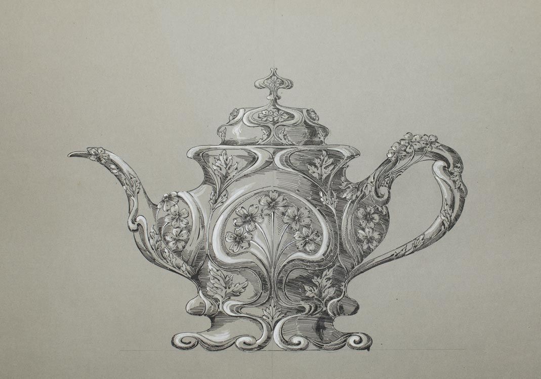 14-1/2 x 10--3/4 inches. Matted. 14-1/2 x 10--3/4 inches. George R. Benda worked in New York at the end of the 19th century; he specialized in designs in silver, many for the noted firm of Black, Starr & Frost - Gorham, and other ornamental metalwork, such as this fine example.