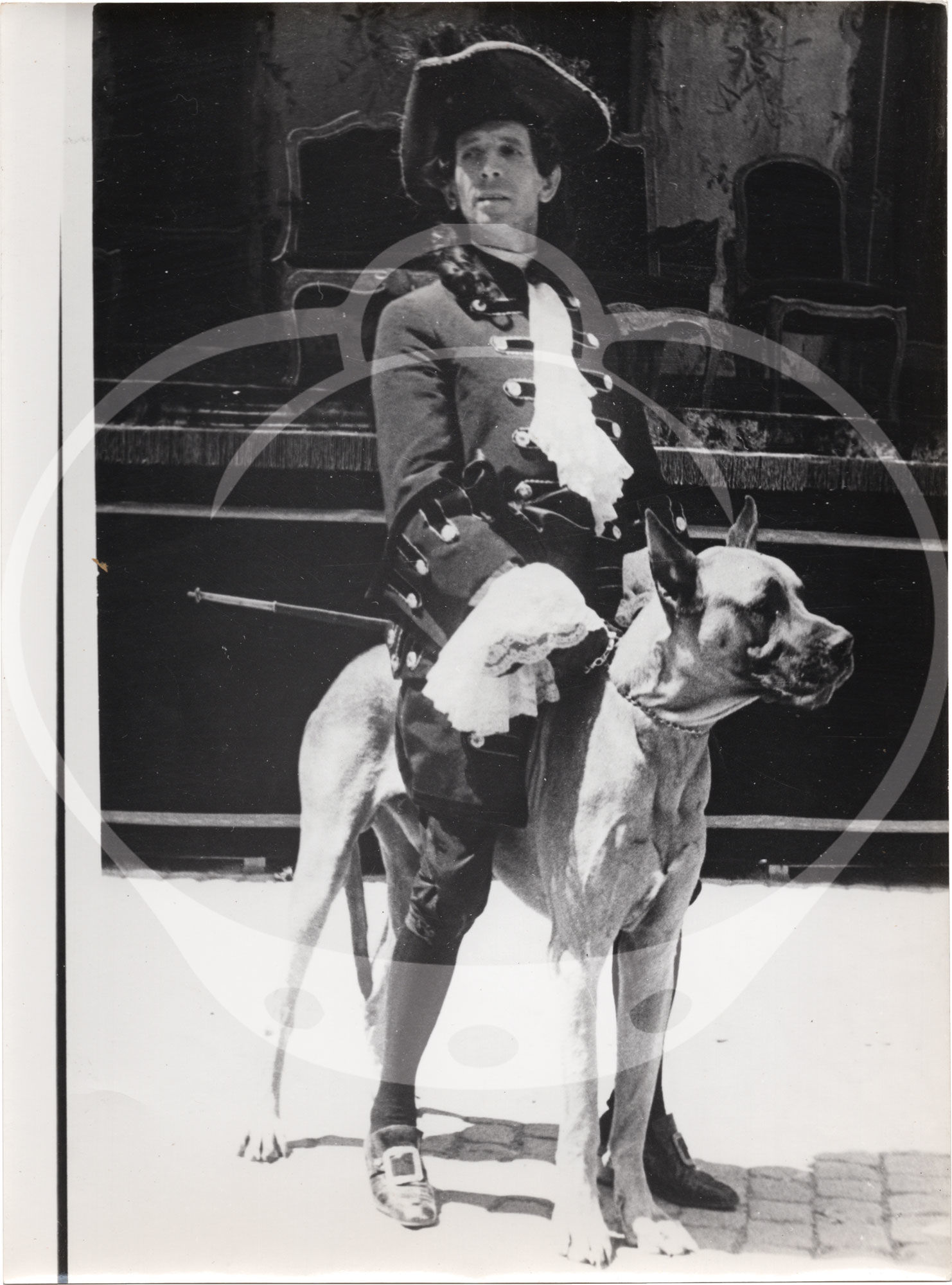 Paris: N.p., 1962. Collection of six photographs, including four vintage black-and-white still photographs and two double weight photographs, showing French actor and comedian Pierre Repp. Four images show Repp on the set of Philippe de Broca's "Cartouche" (1962), as Le marquis de Griffe. The two double weight promotional images were produced by Philips presumably during the mid 1950s, when Repp had released some comedy albums with the music company.