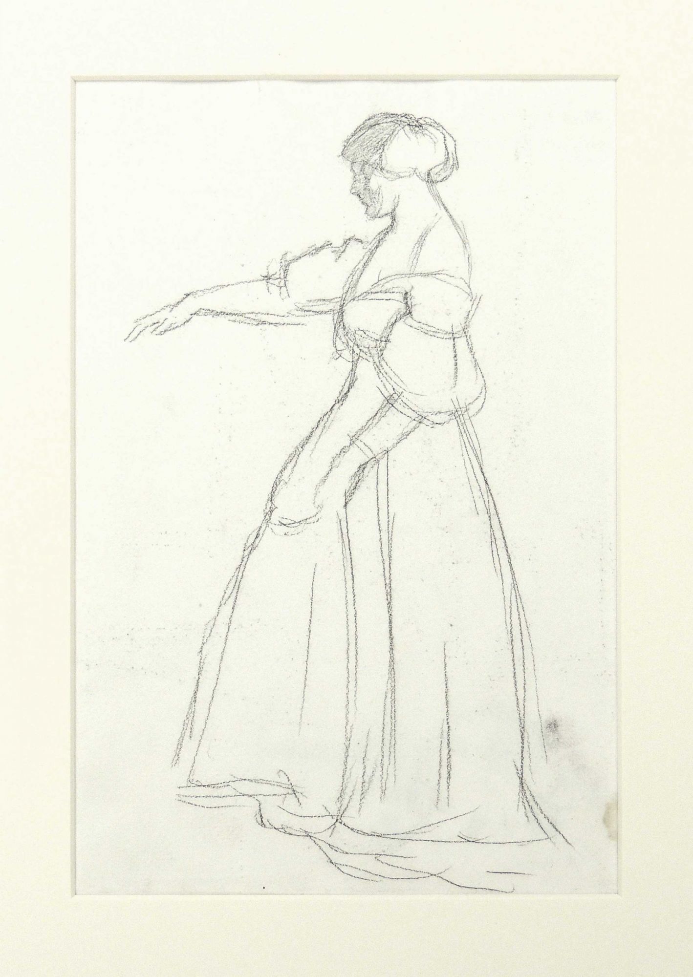 1913. Very Good. English artist, Sir William Rothenstein (1872 - 1945), was highly regarded for his portraits of authors, royalty, and other famous persons. He was also an official war artist during both world wars and served as the Principal of the Royal College of Art between the wars. This is a lovely pencil drawing on paper of the artist's wife, Alice, that was done as a study for the double portrait of her and Eric Gill now at the National Portrait Gallery in London. The drawing is from the collection of the Rothensteins' daughter, Betty Holiday. The study measures 26.4 x 18.5 cm. In very good condition with slight aging to margins and a pencil smudge along the hem of Alice's dress, neither affecting the image. A few pencil marks on the verso, possibly by artist practicing pencil strokes. In an archival mat and protected by sheet of tissue paper. ORIG/071216.