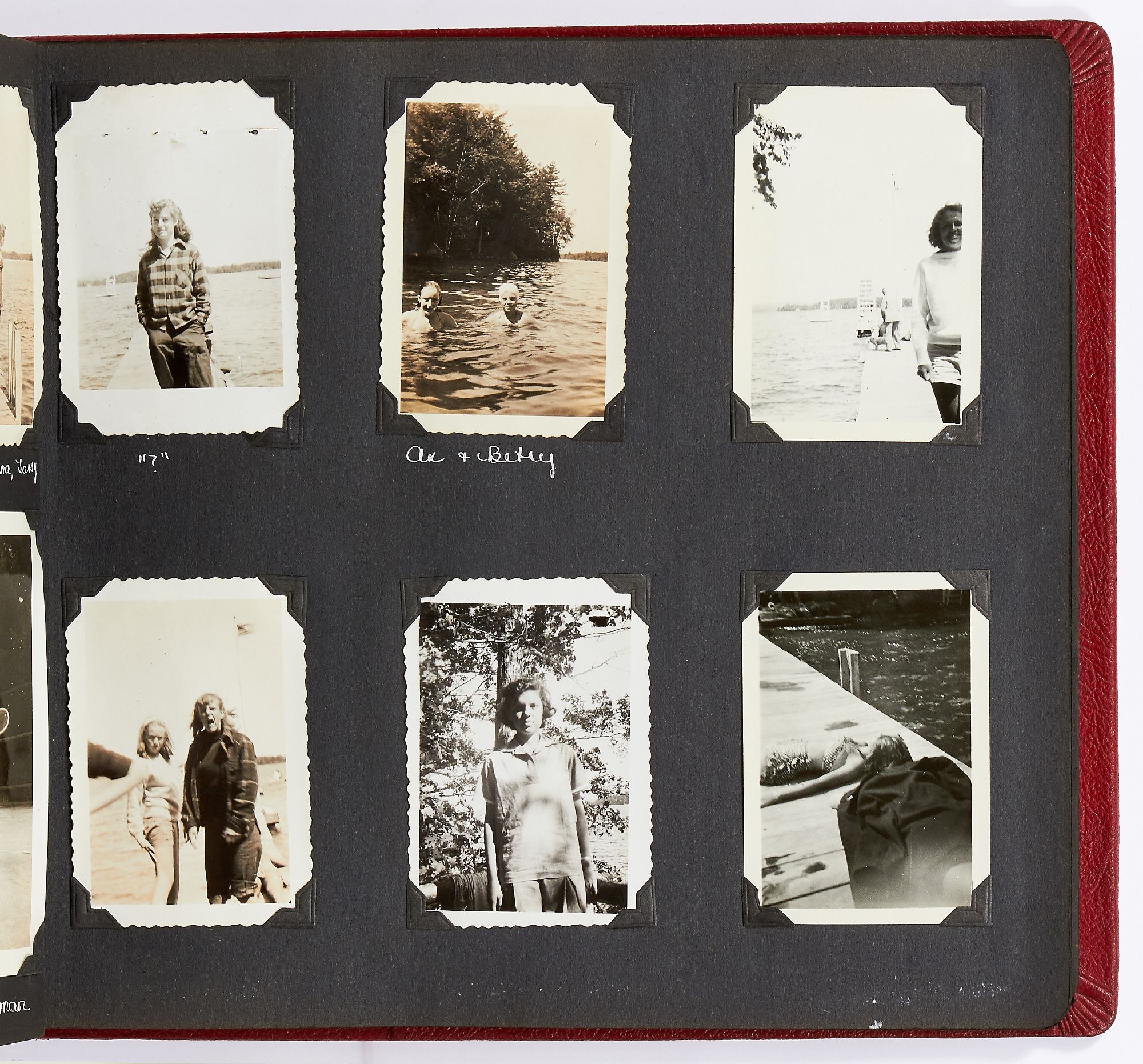 New Hampshire, 1940. Hardcover. Very Good. Oblong quarto. Measuring 12" x 10". Brad bound red leatherette album with gilt decorations. Contains 84 black and white or sepia toned gelatin silver photographs measuring between 2.5" x 3.5" and 8" x 10", with captions. Some rubbing else very good with near fine photographs.