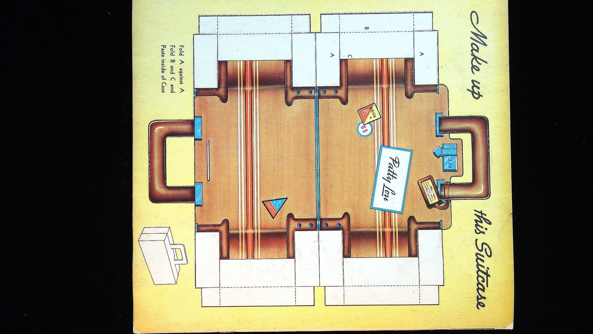 1940. Patty Lou has red hair and blue eyes and comes with clothes and accessories that include play clothes and toys, a fur coat, and seasonal outfits. There is a punch-out suitcase with her name attached.Measures 10 1/2" x 9 1/2": Whitman Publishing Co. Illustrated: Florence Winship1941. 1 Doll, 4 costume pages. slight wear on cover.