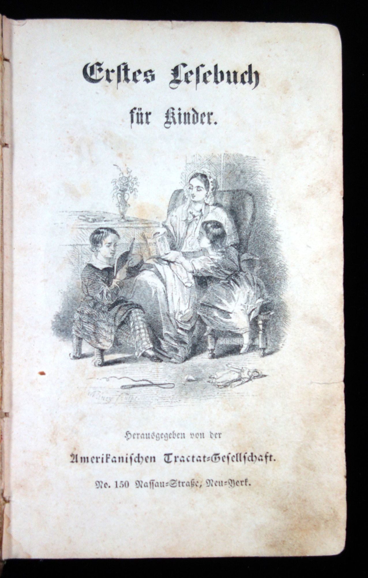 New York: American Tract Society. 160 pp. Blind stamped, gilt brown cloth hard cover, illustrated, entirely in German.