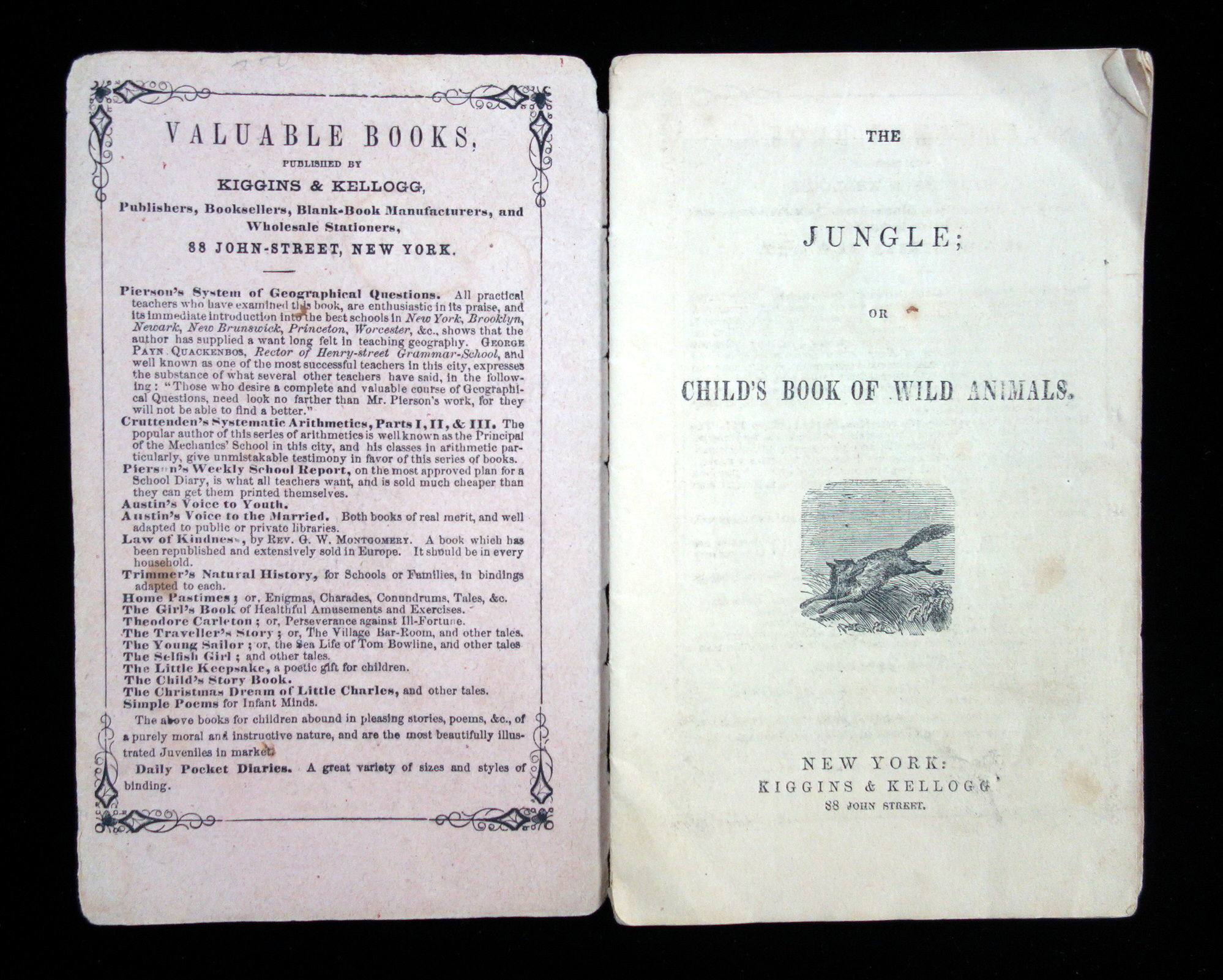 New York: Kiggin & Kellogg. 24 pp. Illustrated cover,fourth series no. 9. illustrated engravings of animals with text.