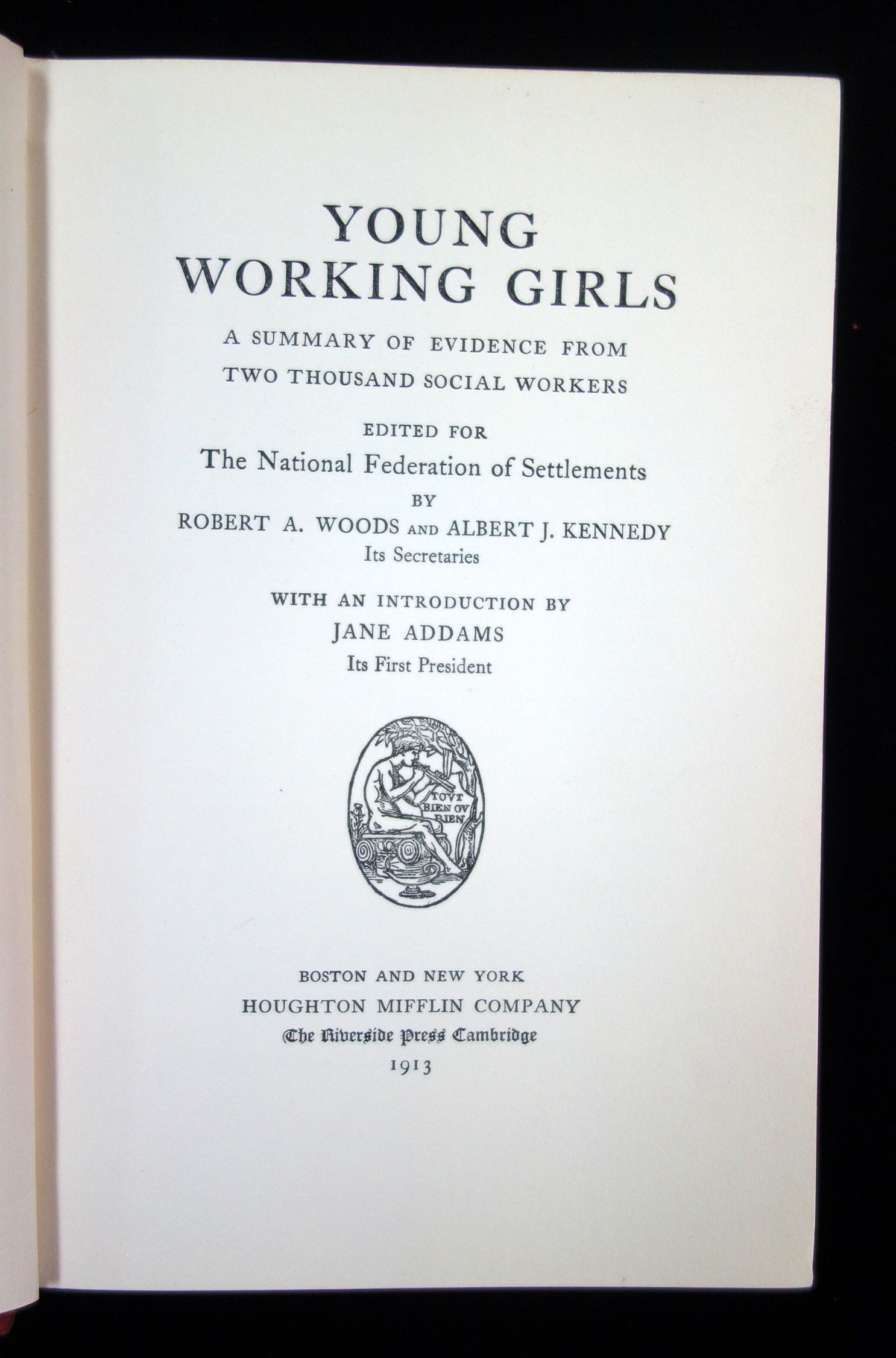 Young Working Girls: A Summary of Evidence From Two Thousand Social Workers. Robert Woods and Albert J. Kennedy Houghton Mifflin Company Boston
