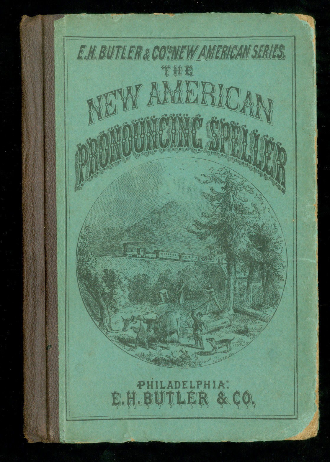 Philadelphia: E.H. Butler, 1872. 143 pp, light green applied illustrated cover, Children's spelling lesson book, describes sounds and includes practice lessons, contains illustrations, preface by author, ends with weights and measurements and multiplication tables.