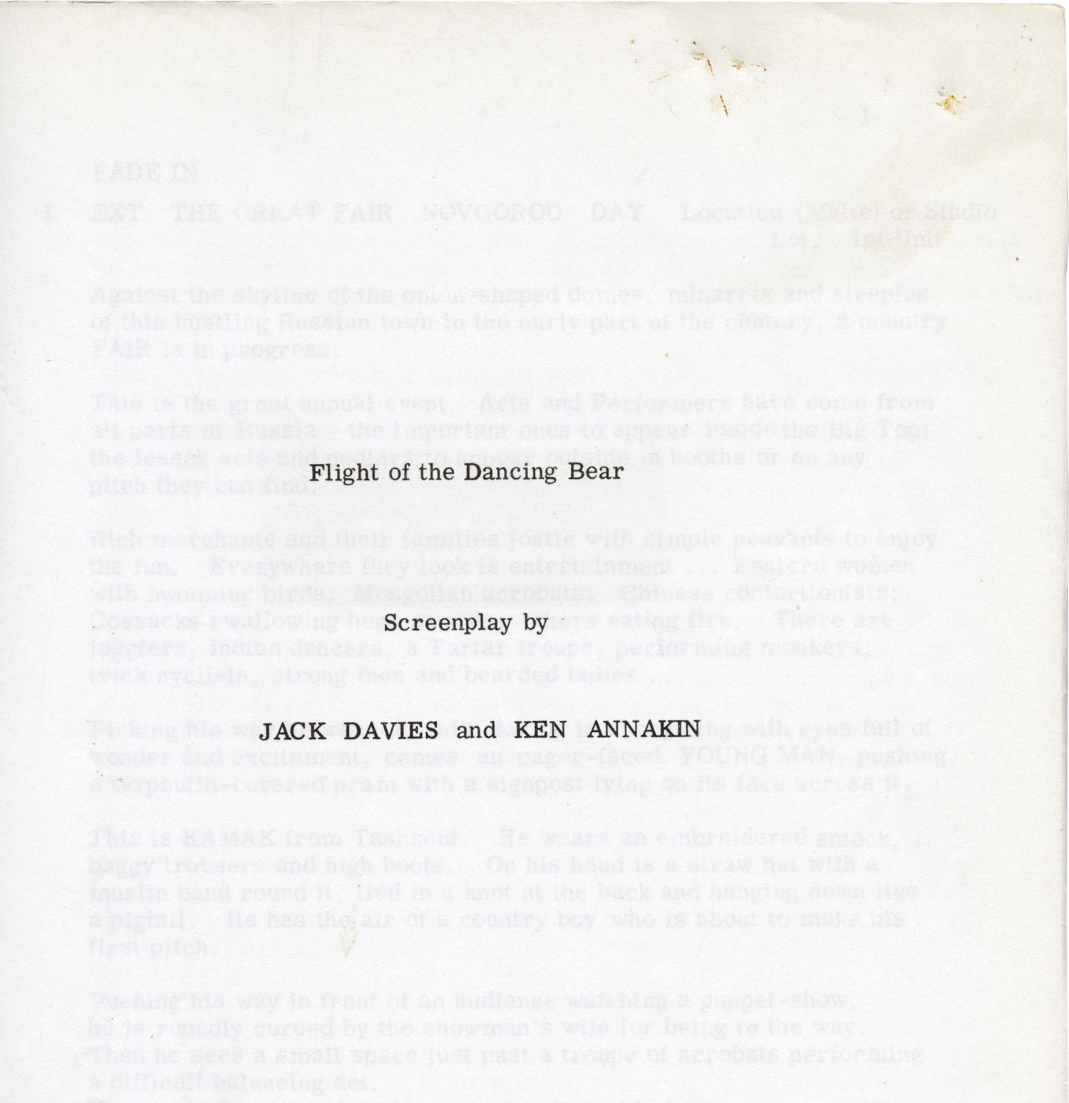 Flight of the Dancing Bear (Original screenplay for an unproduced film)