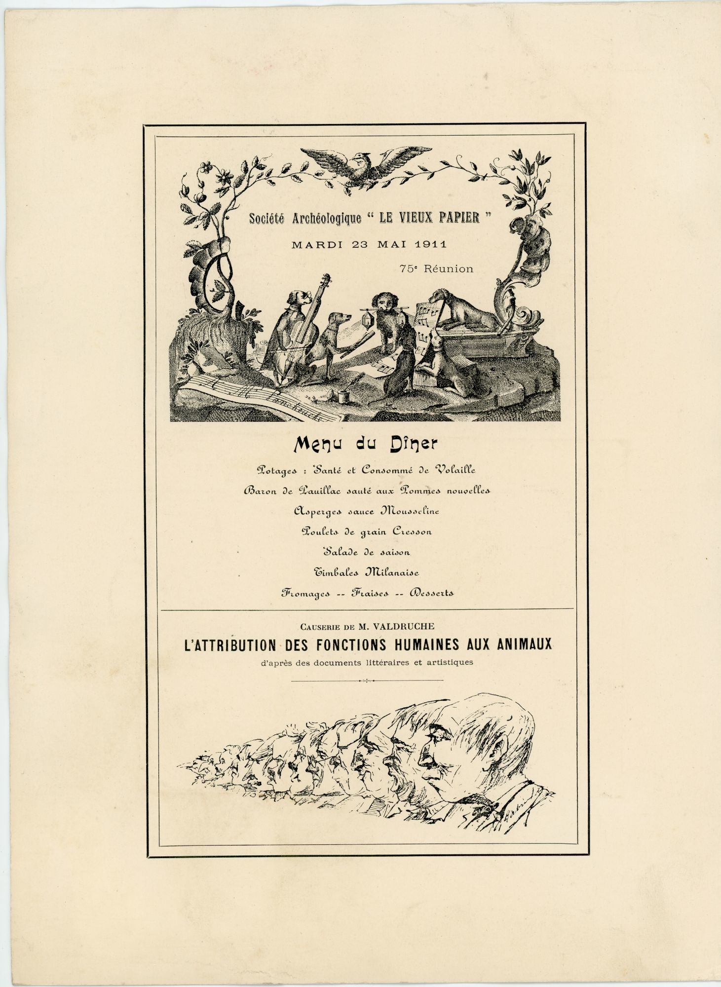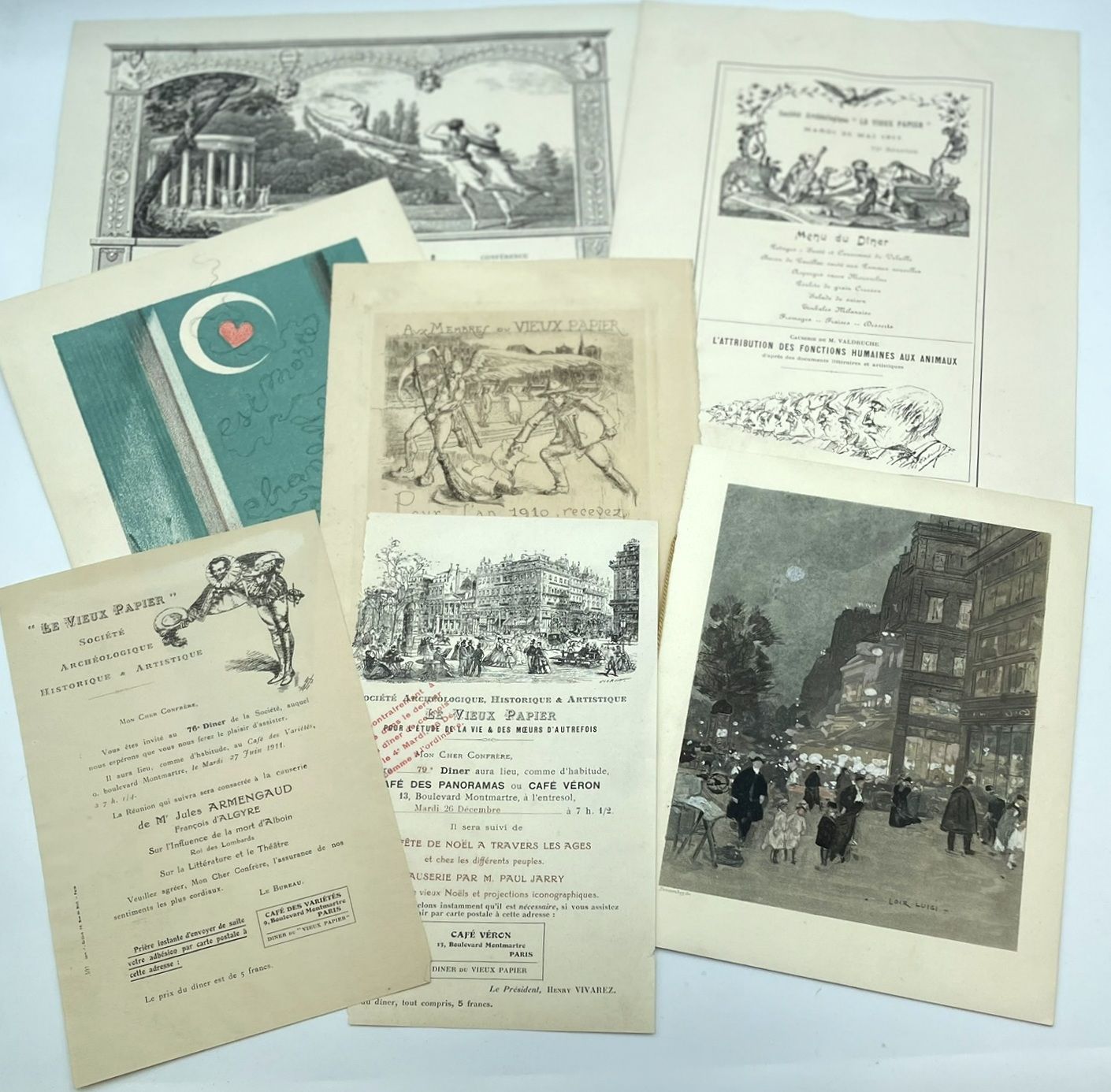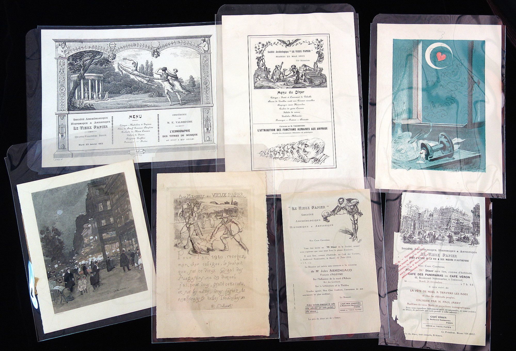 Menus and Invitations for the Societe Archeologique, Historique & Artistique le Vieux Papier our l'etude de la vie & Des Moeurs d'autrefois (Archaeological Society, Historical and Artistic Old Paper for the Study of Life & Habits) 1910-