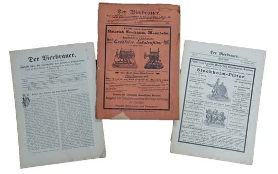 Germany, 1904. Collection of 237 beer brewing magazines plus 7 individual separate supplements. 29 are issued monthly and 208 are weekly. Promotion brochures inserted into some magazines with narrative description, imagery and testimonials. Covers depict brewing machinery. Extensive advertisements included descriptions and imagery of products. Content predominantly technical journal articles.