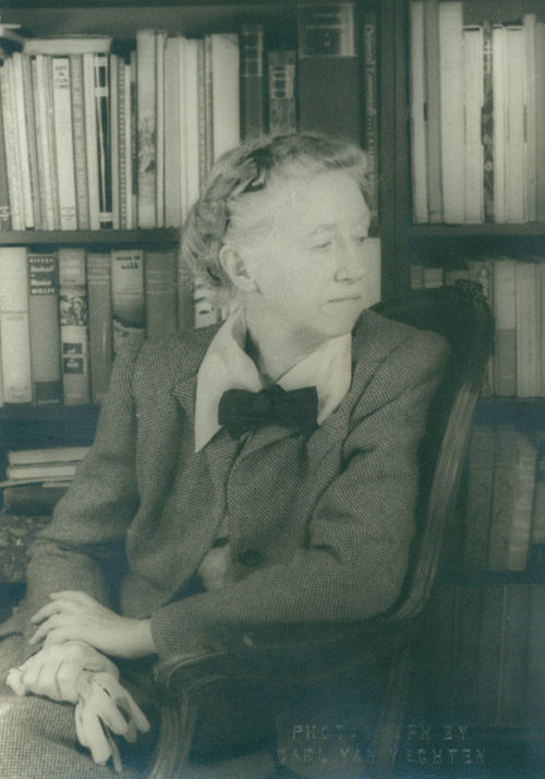 [New York], 1948. Silver print. 1 vols. 6-3/4 x 4-5/8 inches. Atelier stamp lower right “Photograph by Carl Van Vechten”, and on verso, with holograph notations in pencil giving the subject of the photograph, date, and the number of the negative. Silver print. 1 vols. 6-3/4 x 4-5/8 inches. Fine, small portait of the poet in bowtie, seated in a chair before a wall of books; clearly taken during the same session as the famous Van Vechten portrait in the Library of Congress ([LC-USZ62-42513]).
