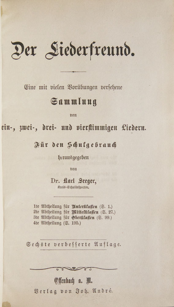 Der Liederfreund. Eine mit vielen Vorübungen versehene Sammlung von ein-, zwei-, drei- und vierstimmigen Liedern. Für den Schulgebrauch ... 1te [-4te] Abtheilung Sechste verbesserte Auflage