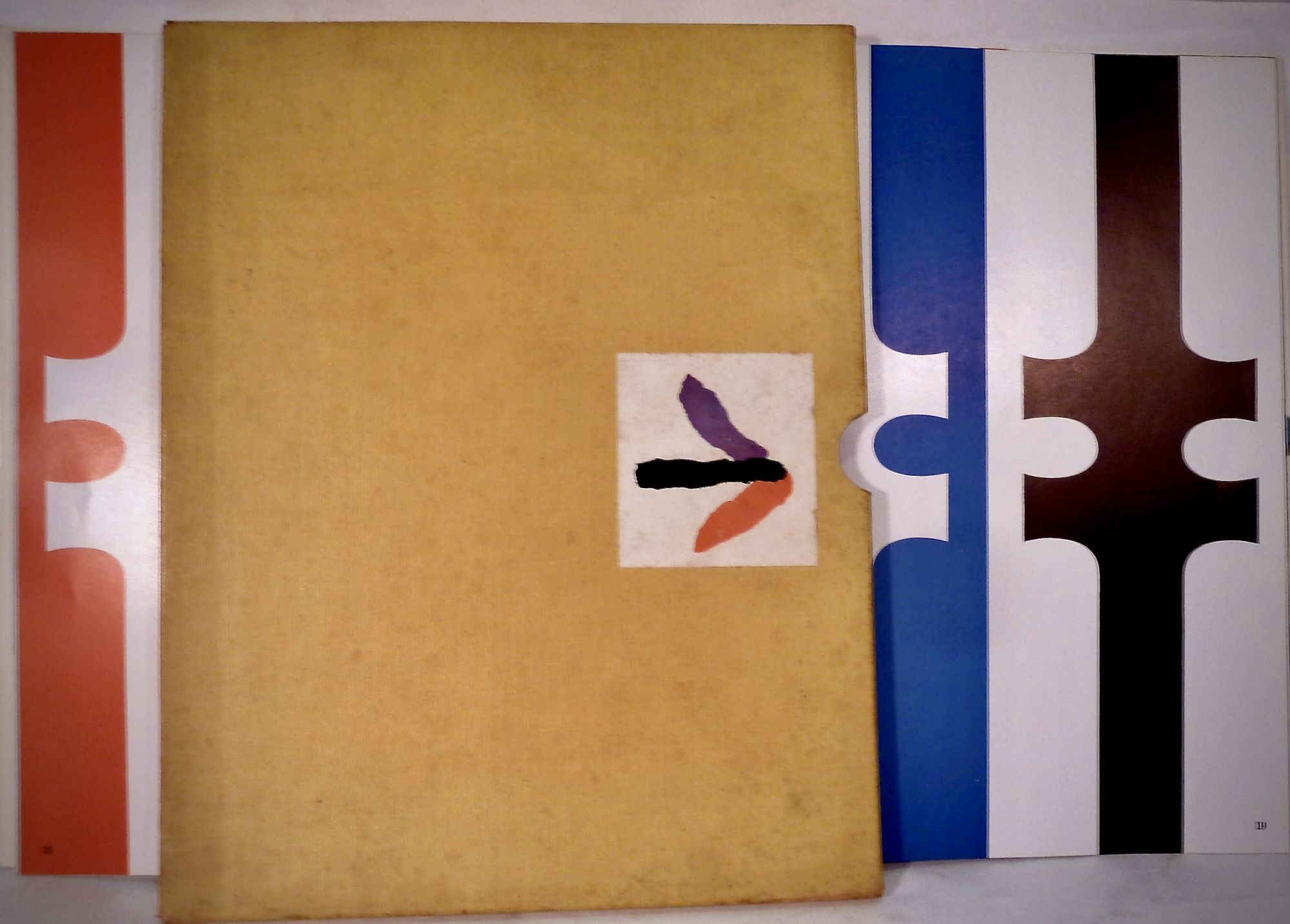 Buffalo: Fortune, 1960. First edition. Hardcover. Orig. stiff decorated wrappers. Very good in dusty, decorated yellow cloth slipcase. Unpaginated. 33 x 26 cm. 47 color designs, each with descriptive text, interpretations of the design's intent by the author, Fortune Magazine's Art Director. Printed on 80 pound production gloss from Consolidated Paper. Cover stock is 16 pint Supertuff. Entire book printed letterpress direct from engravings, and printed in Century Schoolbook. Slight discoloration at backstrip.