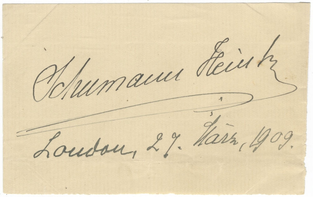On a slip of paper 68 x 109 mm. Dated London, March 27, 1909. In black ink.
