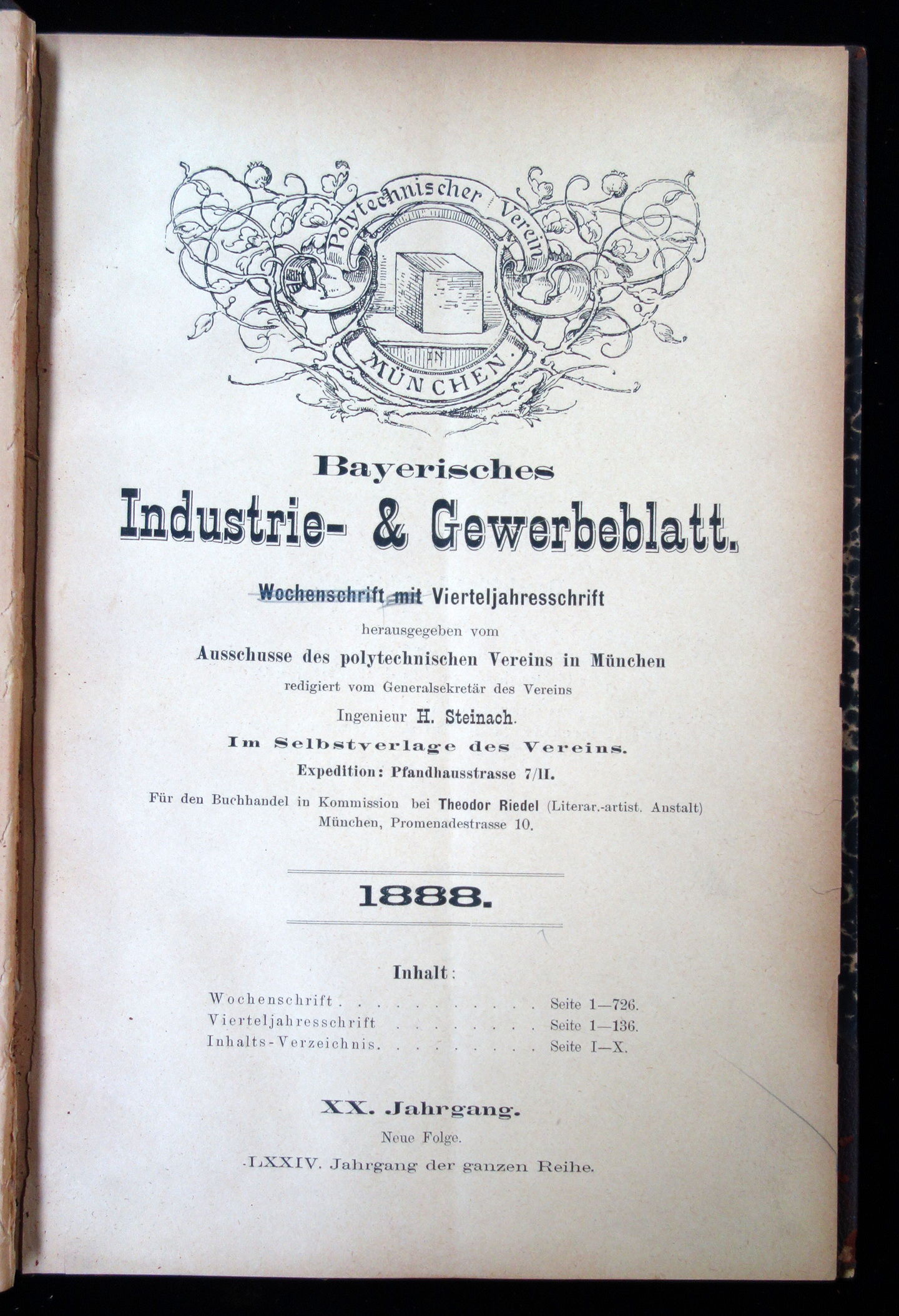 Bayerisches Industrie- & Gewerbeblatt (Bavarian Industry and Trade Sheet: weekly periodical with quarterly issues from the committee of the polytechnic association in Munich)
